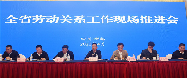 4月9日全省劳动关系工作现场推进会在成都市新都区召开,对2021年全省和谐劳动关系工作进行部署
