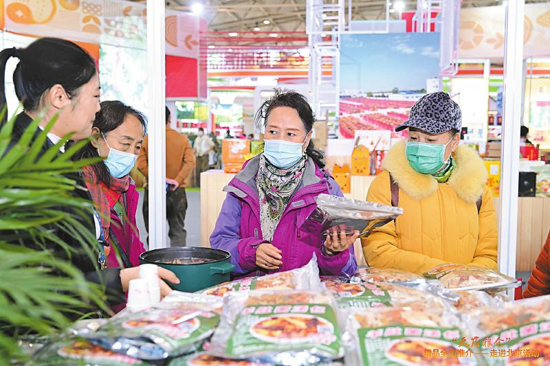 “天府粮仓”精品北京推介活动现场,消费者在挑选农产品。 受访者供图