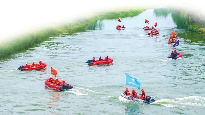 近日,成都市大邑县蓝天救援队、雪山救援队等力量联合举办2025年防汛减灾综合应急演练。黄加荣 摄(C视觉)