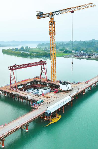 天眉乐高速公路青神汉阳岷江特大桥施工现场。古良驹 摄
