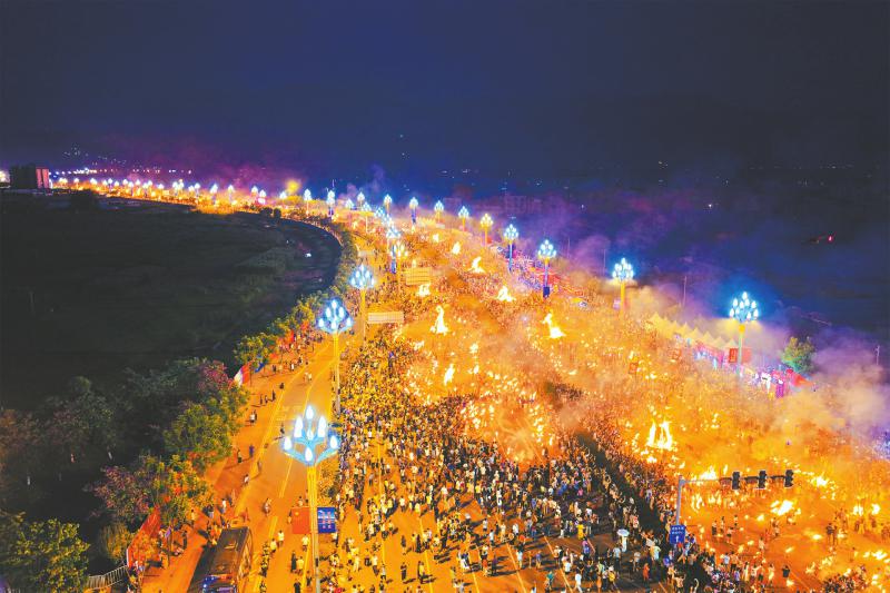 2025年7月18日,激情火把照亮凉山夜空。王荣升 摄