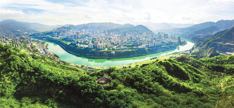 当无人机飞跃城乡时,白墙灰瓦、绿树掩映、公园绿洲、道路干净。当视野拉开,站在更高处俯视,雅砻江与金沙江宛如两条绿带,在青山群岚中蜿蜒交汇于攀枝花,宛如一幅长江上游版的“千里江山图”。