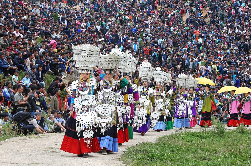 往届火把节上的银饰展示。新华网发(邹森 摄)