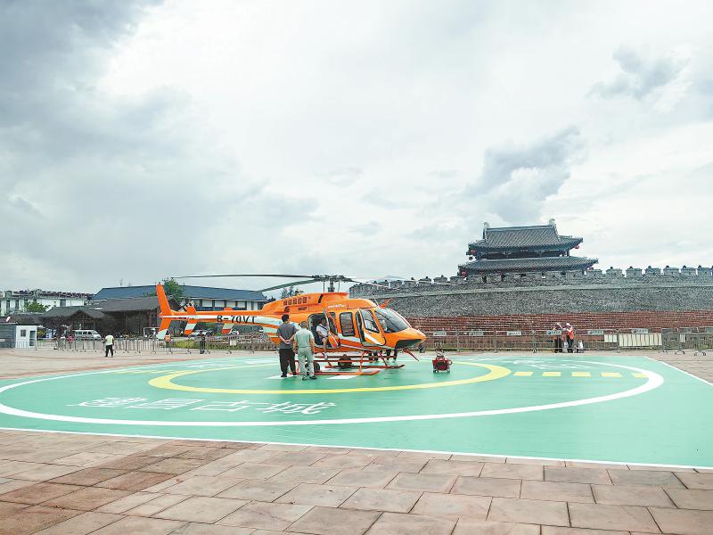 7月5日,执行西昌低空文旅航线首飞任务的直升机。西昌市融媒体中心供图