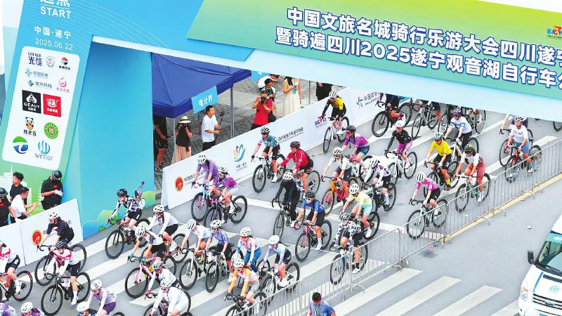 六月二十二日,中国文旅名城骑行乐游大会四川遂宁站暨骑遍四川二○二五遂宁观音湖自行车公开赛鸣枪开赛。遂宁观察 刘益静 摄