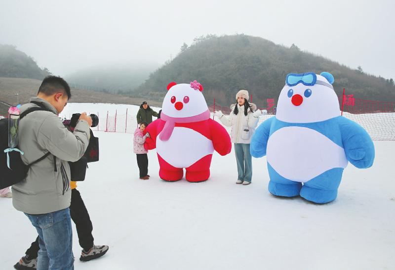 游客在巴山大峡谷罗盘顶滑雪场打卡拍照。宣汉县委宣传部供图
