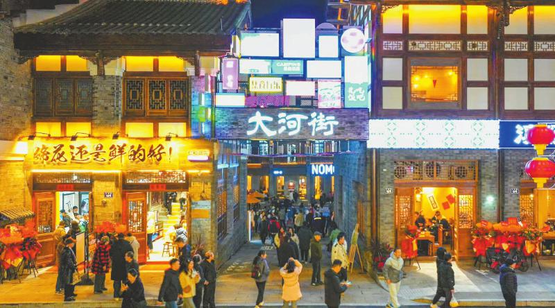 “‘老’就是大河街的优势,泸州的老文物多、历史文化也多。这里承载着无数泸州人的记忆,有泸州人的情怀,也有泸州人的乡愁。”江阳区文化广播电视和旅游局相关负责人说。曾经的破旧老街区,正通过业态升级与文物活化让“老街新生”,变为游客争相打卡的“网红地”。