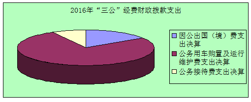 2016年度“三公”经费财政拨款支出决算中,因公出国(境)费支出决算15.41万元,占15.52%;公务用车购置及运行维护费支出决算75.96万元,占76.53%;公务接待费支出决算7.89万元,占7.95%。具体情况如下:
