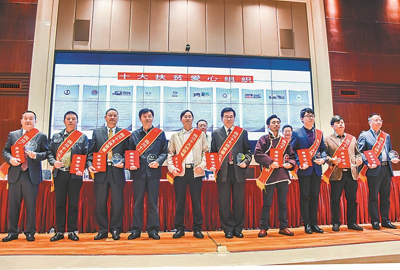 四川省“扶贫日”系列活动暨社会扶贫工作推进会上,2016“四川十大扶贫爱心组织”代表领奖。黎风摄