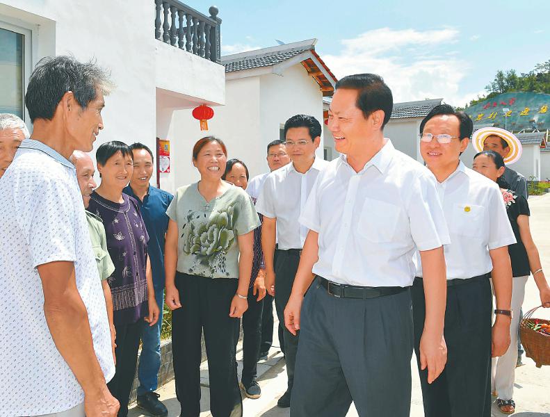 8月的秦巴山区树木苍翠、郁郁葱葱,一幢幢农家小院坐落在青山绿水之间。彭清华先后来到广元市朝天区蒲家乡罗圈岩村、剑阁县汉阳镇中心村、巴中市南江县正直镇长滩村、巴州区曾口镇书台村,走进村委会、便民服务站和特色农业园区,与基层干部群众、返乡创业人员亲切交流,详细了解现代农业发展、农村环境整治、电商扶贫、基层党组织建设等情况。彭清华指出,实施乡村振兴战略是新时代做好“三农”工作的总抓手,必须摆在治蜀兴川的优先位置来抓。要科学编制相关规划,进一步优化村落布局、凸显建筑特色,注重保护乡村自然风貌、田园风光、历史文化和民俗风情,让群众望得见山、看得见水、记得住乡愁,避免“千村一面”。要大力促进乡村产业振兴、人才振兴、文化振兴、生态振兴、组织振兴,进一步强化利益联结机制、维护农民权益,推动农业全面升级、农村全面进步、农民全面发展。