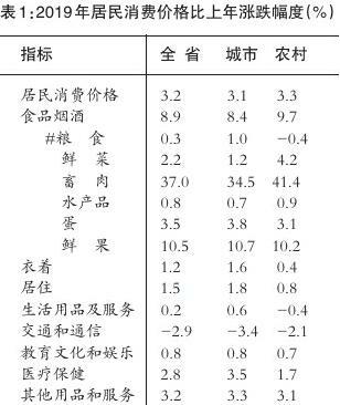 全年居民消费价格(CPI)比上年上涨3.2%,其中医疗保健类上涨2.8%,居住类上涨1.5%,教育文化和娱乐类上涨0.8%,食品烟酒类上涨8.9%。商品零售价格比上年上涨2.7%。农业生产资料价格比上年上涨9.0%。工业生产者出厂价格(PPI)比上年上涨0.4%,其中生产资料价格上涨0.2%,生活资料价格上涨0.7%;工业生产者购进价格(IPI)比上年上涨0.6%。