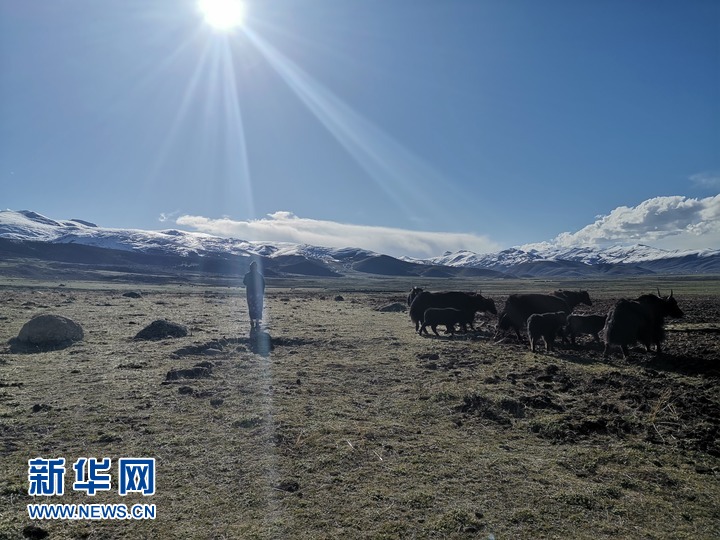 牧民在卡灰村集体牧场放牧(2020年5月29日摄)。