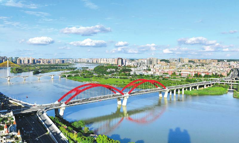 南充嘉陵江城区段滨江景观,碧水与城市、蓝天与白云相互映衬。余中华 摄(C视觉)