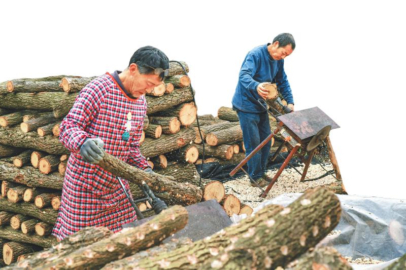 耳农正在段木上打孔,用于育种银耳。(资料图片 程聪 摄 C视觉)