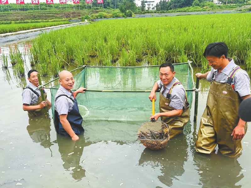 “‘双稻’即一季中稻加一季再生稻,‘双虾’即养殖一季台湾大头虾和一季小龙虾。”泸县乡村振兴发展促进中心副主任郑盛霞介绍。