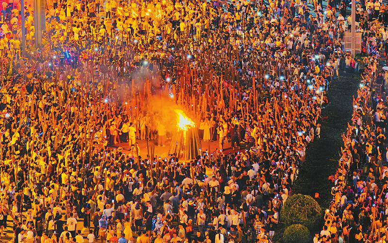 7月18日晚,2025年凉山彝族火把节开幕式在西昌举行。