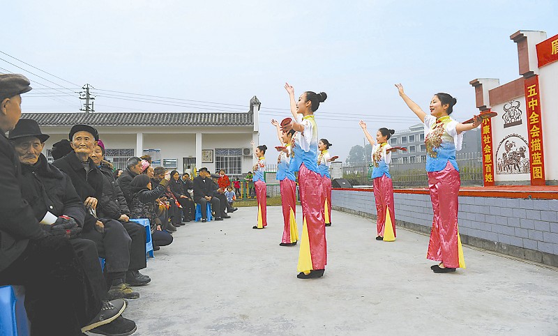 12月9日,眉山市心连心艺术团来到彭山区武阳镇文化站,通过小品、歌舞等形式向当地群众宣讲党的十八届五中全会和省委十届七次全会精神。