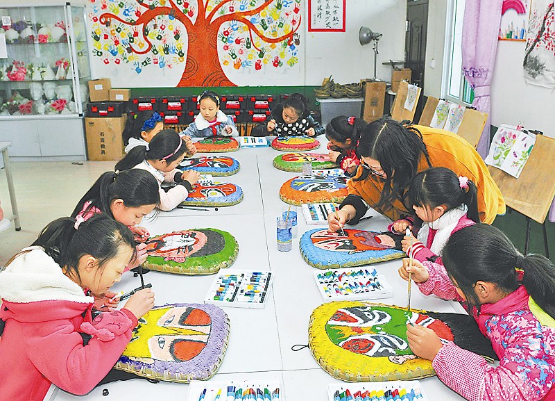12月2日,南江县石滩乡中心小学的孩子在“乡村学校少年宫”绘画室作京剧脸谱画。