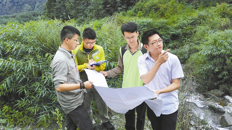 野外调查小组在彭州市小鱼洞镇开展小流域调查
