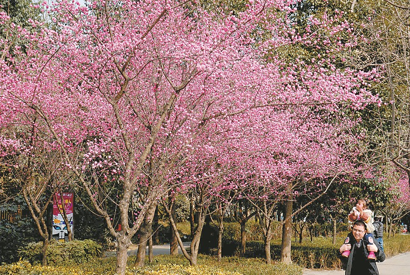 青羊区光华大道路边的城市公园给市民带来无限美景。(郝维平 摄)