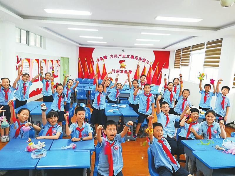 6月15日,泸州师范学校附属小学城西学校的孩子们高兴地学做香囊。(李盛琴)