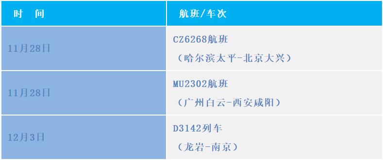 搭乘过以下交通工具的来(返)川人员,第一时间主动向社区或居(村)委会、单位或入住酒店报备旅居史,配合做好相关防控工作。