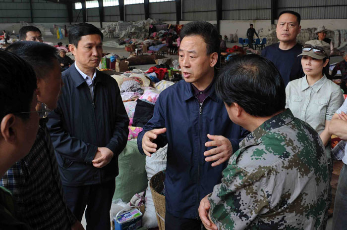 魏宏在宝兴县灵关镇检查抗震救灾工作