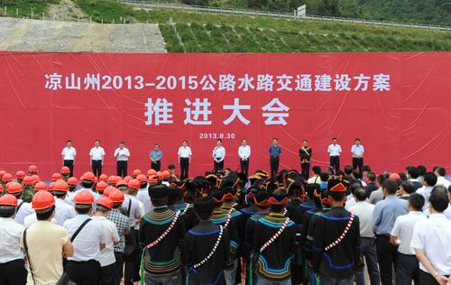 凉山州打响交通大会战,预计通过3年初步实现公路水路交通对外通畅、对内通达,加快构建南向出川大通道区域性综合交通枢纽。8月30日下午,省委副书记、省长魏宏在凉山州冕宁县拖乌乡出席凉山州2013-2015年公路水路交通建设方案推进大会,并宣布方案正式启动。