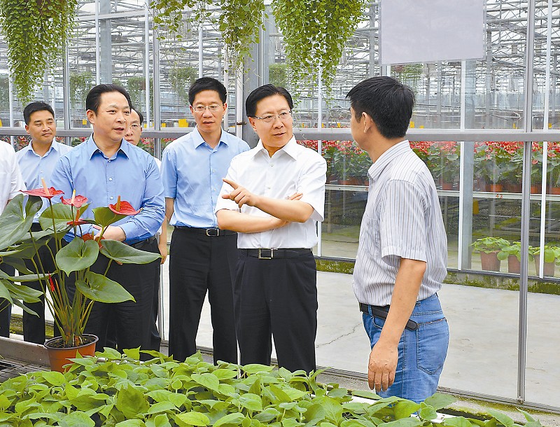 6月15日,省委书记王东明到都江堰市崇义现代农业科技示范园调研,详细了解园区土地流转,当地群众入股分红、就近就业等情况。 (记者 毛漫丁 摄)