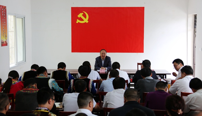 尹力在北川县坝底乡通坪村作党课:带领群众打赢脱贫攻坚战