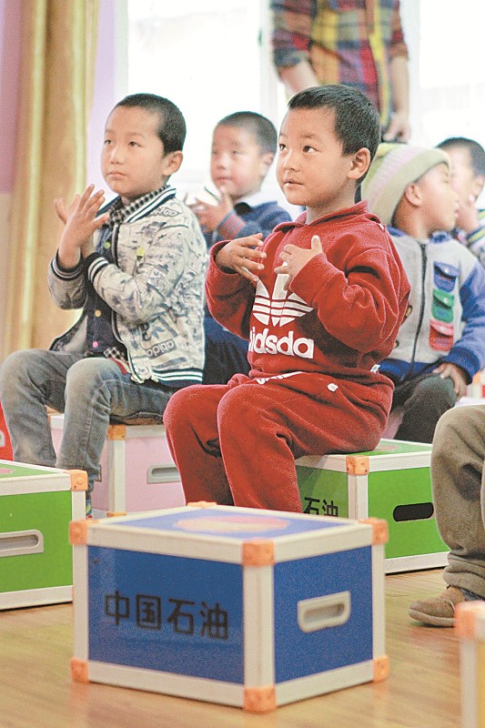中石油西南油气田公司援建的九龙县第二幼儿园内,孩子们正在上课。