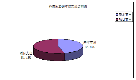 2016年四川省国防科技情报研究所本年支出合计804.67万元,其中:基本支出369.12万元,占45.87%;项目支出435.55万元,占54.13%。2016年本年支出合计较2015年增加76.98万元,增长10.58%,变动的主要原因是增加单位为职工缴纳的基本养老保险和单位为职工缴纳的职业年金。