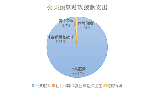 2016年一般公共预算财政拨款支出1132.59万元,主要用于以下方面:一般公共服务支出1112.99万元,占98.27%;社会保障和就业支出0.26万元,占0.02%;医疗卫生支出7.98万元,占0.7%;住房保障支出11.37万元,占1.01%。