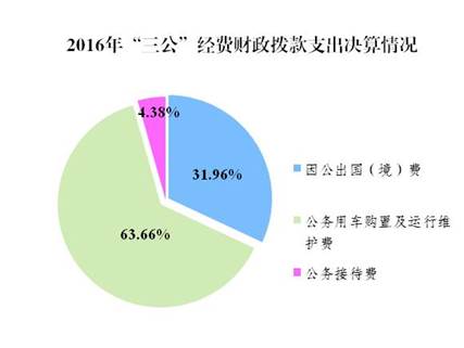 2016年度“三公”经费财政拨款支出决算中,因公出国(境)费支出决算50.82万元,占31.96%;公务用车购置及运行维护费支出决算101.22万元,占63.66%;公务接待费支出决算6.97万元,占4.38%。具体情况如下(如下图所示):
