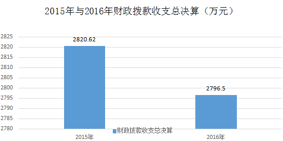 评审中心2016年度财政拨款收支总决算2796.50万元。与2015年相比,财政拨款收、支总计各减少24.12万元,下降0.86%。