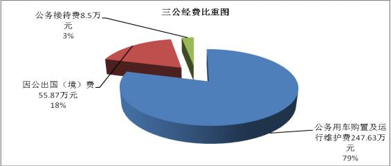 2016年度“三公”经费财政拨款支出决算中,因公出国(境)费支出决算55.87万元,占18%;公务用车购置及运行维护费支出决算247.63万元,占79%;公务接待费支出决算8.5万元,占3%。具体情况如下: