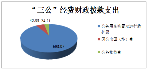 2016年度“三公”经费财政拨款支出决算中,因公出国(境)费支出决算42.33万元,占5.57%;公务用车购置及运行维护费支出决算693.07万元,占91.24%;公务接待费支出决算24.21万元,占3.19%。具体情况如下: