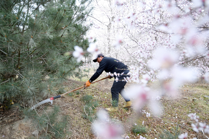 工作人员在雄安新区千年秀林修剪树木(3月29日摄)。 新华社记者 骆学峰 摄