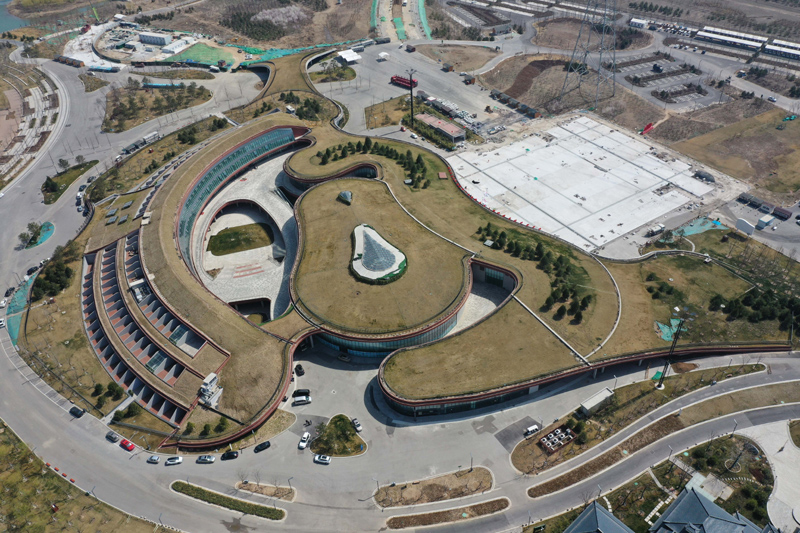 这是3月28日拍摄的雄安商务服务中心(无人机照片)。 新华社记者 朱旭东 摄