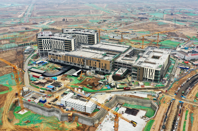 这是3月29日拍摄的雄安新区首都医科大学宣武医院雄安院区项目建设施工现场(无人机照片)。 新华社记者 朱旭东 摄