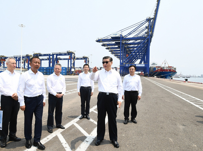 12日上午,习近平总书记来到位于海南省儋州市的洋浦经济开发区,先后考察了洋浦展示馆、洋浦国际集装箱码头小铲滩港区,了解洋浦经济开发区发展和中国特色自由贸易港建设等情况。(记者 张晓松 朱基钗 摄影记者 李学仁 谢环驰 燕雁)