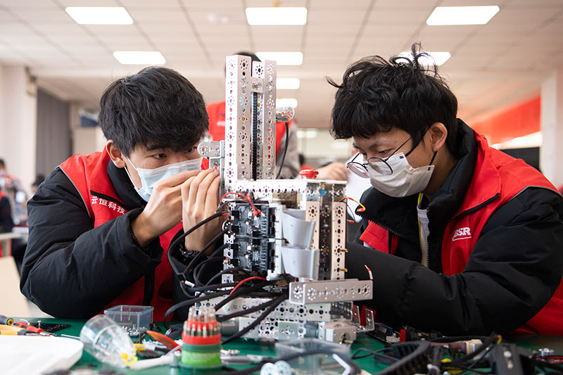 2021年12月25日,第三届山西省职业技能大赛参赛选手在位于山西机械高级技工学校的移动机器人项目赛场进行比赛。新华社记者 杨晨光 摄