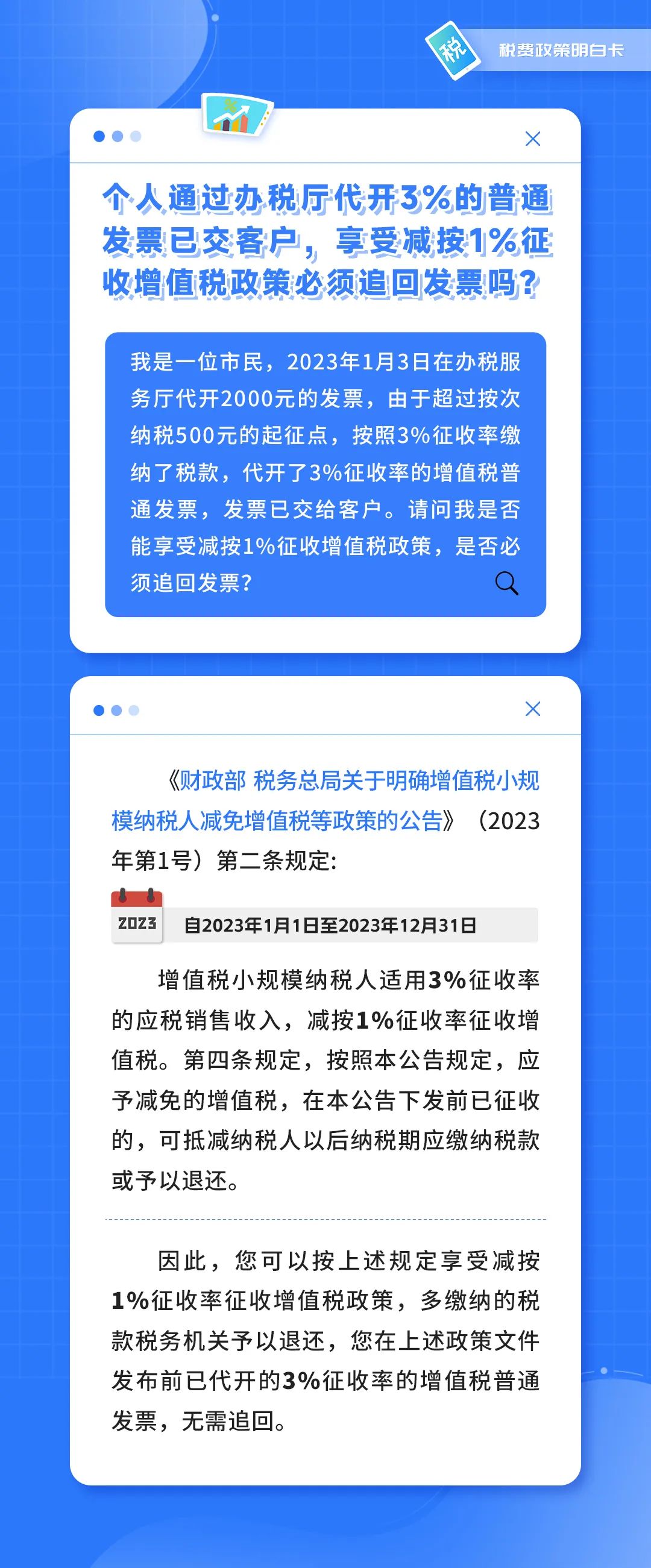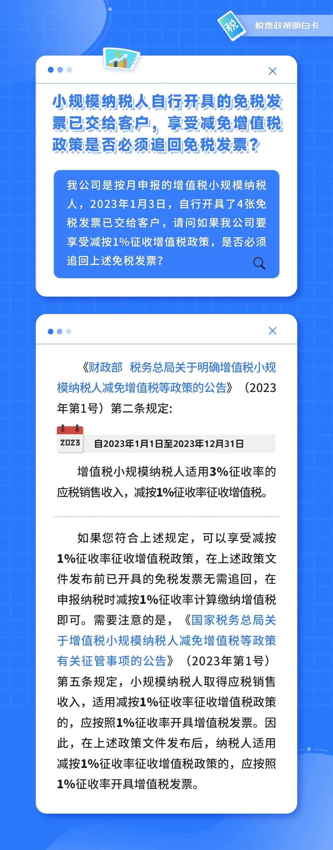 税费政策明白卡:小规模纳税人享受减免增值税政策时已开具发票的处理办法