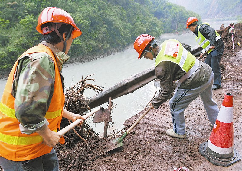 植被茂密,隐患点难于观察,怎么办?在省道210线K316 200米处,四川路桥抗震救灾第一突击队的张翔给出了答案:主动排危。“疏通路两旁的水渠,避免山体饱水引发的次生灾害。”