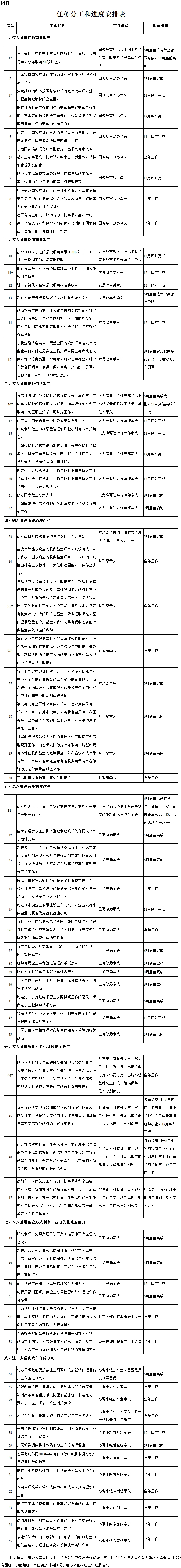 (一)加强组织领导。各地区、各部门主要负责同志和协调小组各专题组、功能组组长要高度重视,勇于担当,切实担负起推进本地区本领域简政放权、放管结合、转变政府职能改革的重任。要切实提高推进改革的效率,根据本方案要求,及时组织制定工作方案并限期出台改革文件,明确时间表、路线图和成果形式,将任务逐项分解到位、落实到人。对主动作为的要激励,对落实不力的要问责,以抓铁有痕、踏石留印的作风,务求有进展、有突破、有实效。