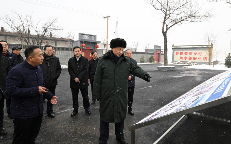1月26日至27日,中共中央总书记、国家主席、中央军委主席习近平来到山西,看望慰问基层干部群众。这是26日下午,习近平冒雪在临汾市霍州市师庄乡冯南垣村考察。 新华社记者 李学仁 摄