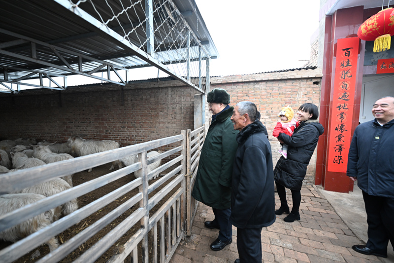 1月26日至27日,中共中央总书记、国家主席、中央军委主席习近平来到山西,看望慰问基层干部群众。这是26日下午,习近平在临汾市汾西县僧念镇段村蔡文明家察看羊圈。 新华社记者 李学仁 摄