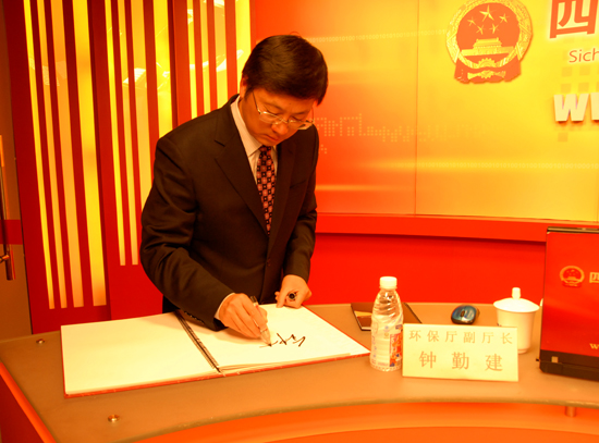 环保厅副厅长钟勤建接受四川省人民政府网站专访并与网友在线交流。图为钟勤建为省政府网站留言。