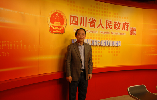 审计厅副厅长陶志伟同志接受四川省人民政府网站专访并与网友在线交流。图为陶志伟参观省政府网站。