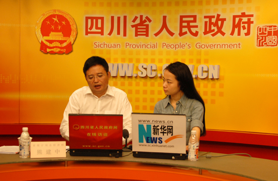 省统计局总经济师熊建中同志接受四川省人民政府网站专访并与网友在线交流。图为熊建中与主持人进行交流。